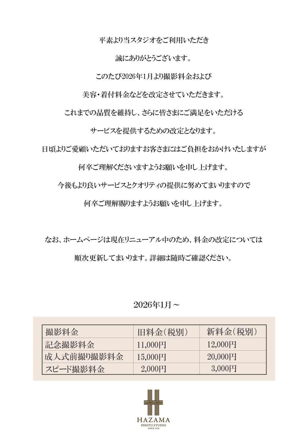 料金改定に関する大切なお知らせ